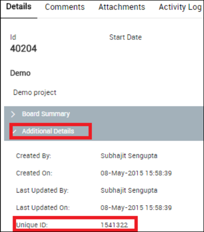 Note: To find the Board Unique ID, go to Board Profile as shown below, and click the Additional Details link.