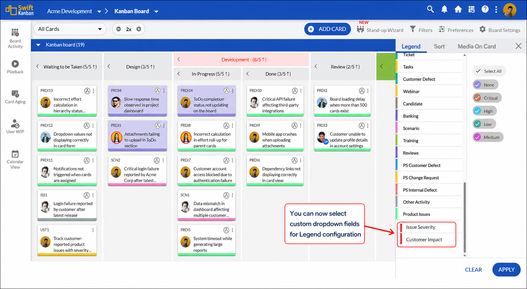 You can now extend Legend configuration beyond default card types and apply it to custom dropdown fields on your Kanban